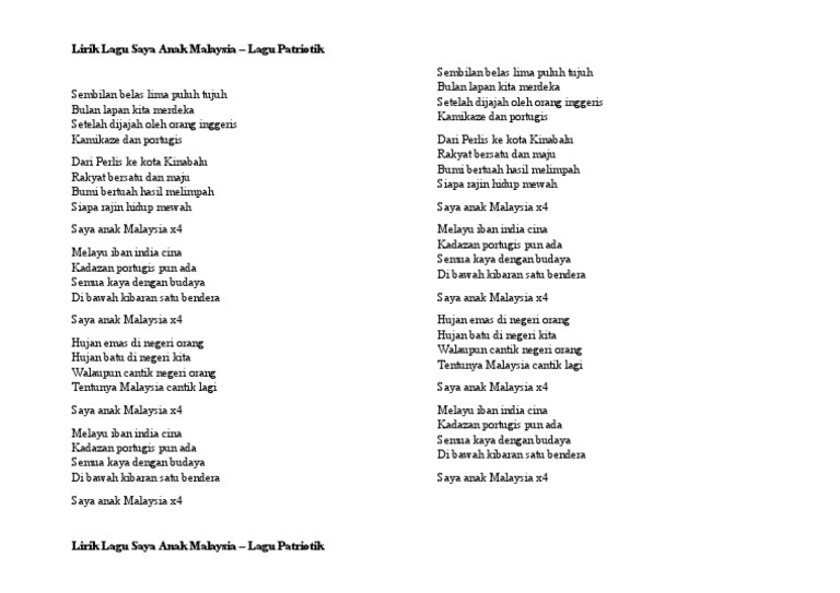 Lirik Lagu Saya Anak Malaysia Pdf